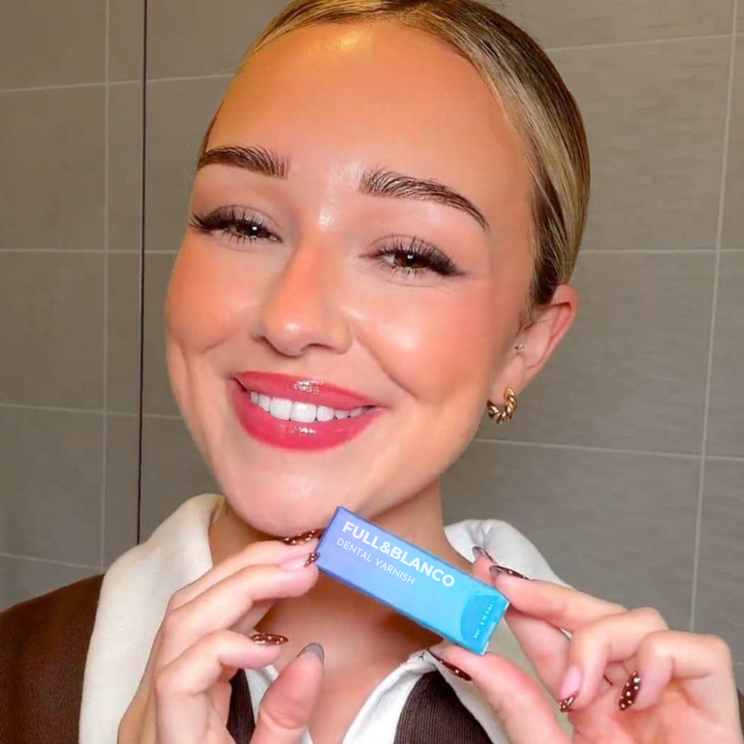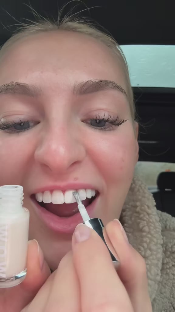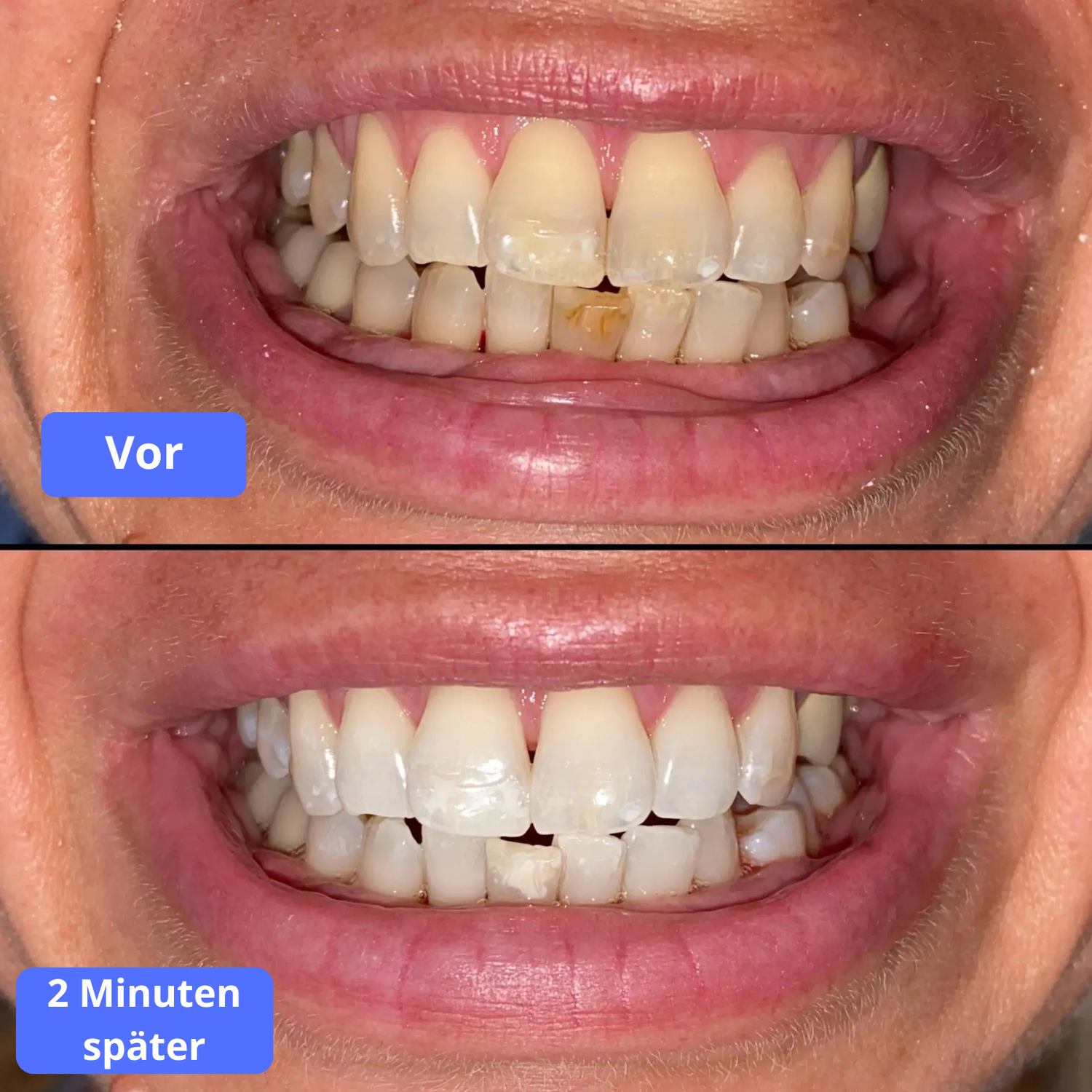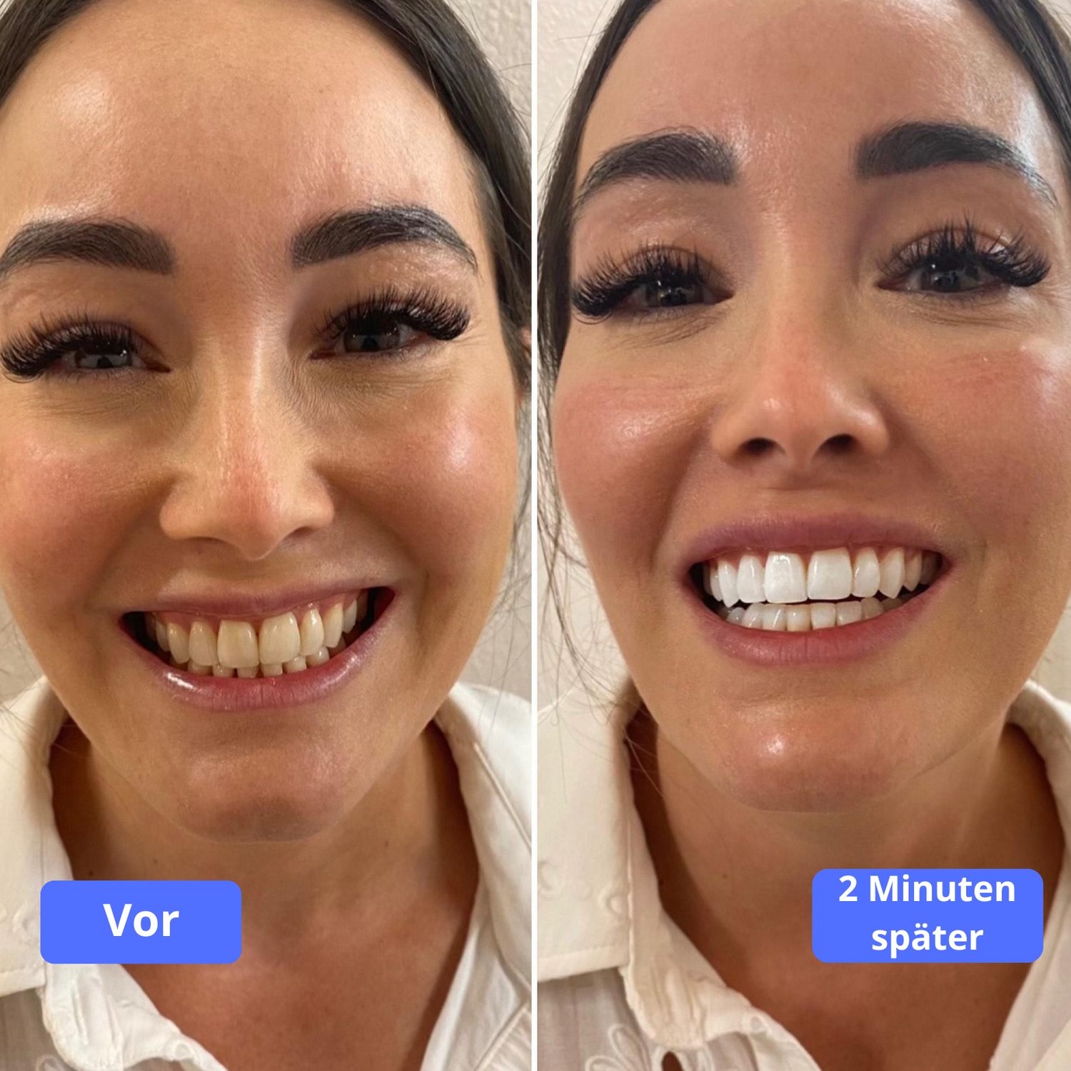 Der Zahnlack passt sich der Farbe Ihrer Zähne an und erzeugt einen natürlichen, strahlenden Effekt – kein „Plastikweiß“.