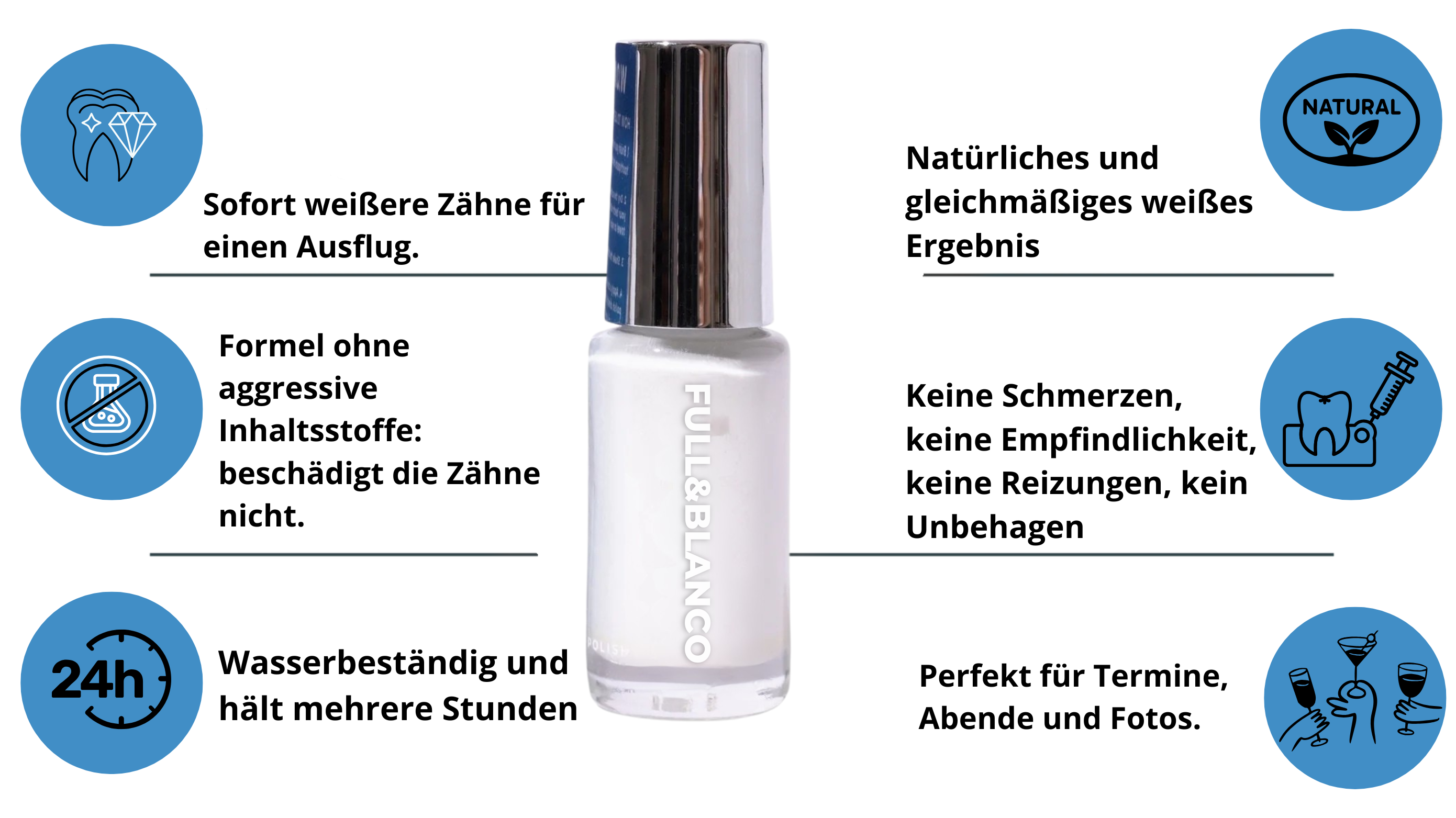 Nein. FULL&BLANCO enthält keine aggressiven Wirkstoffe wie Peroxid.