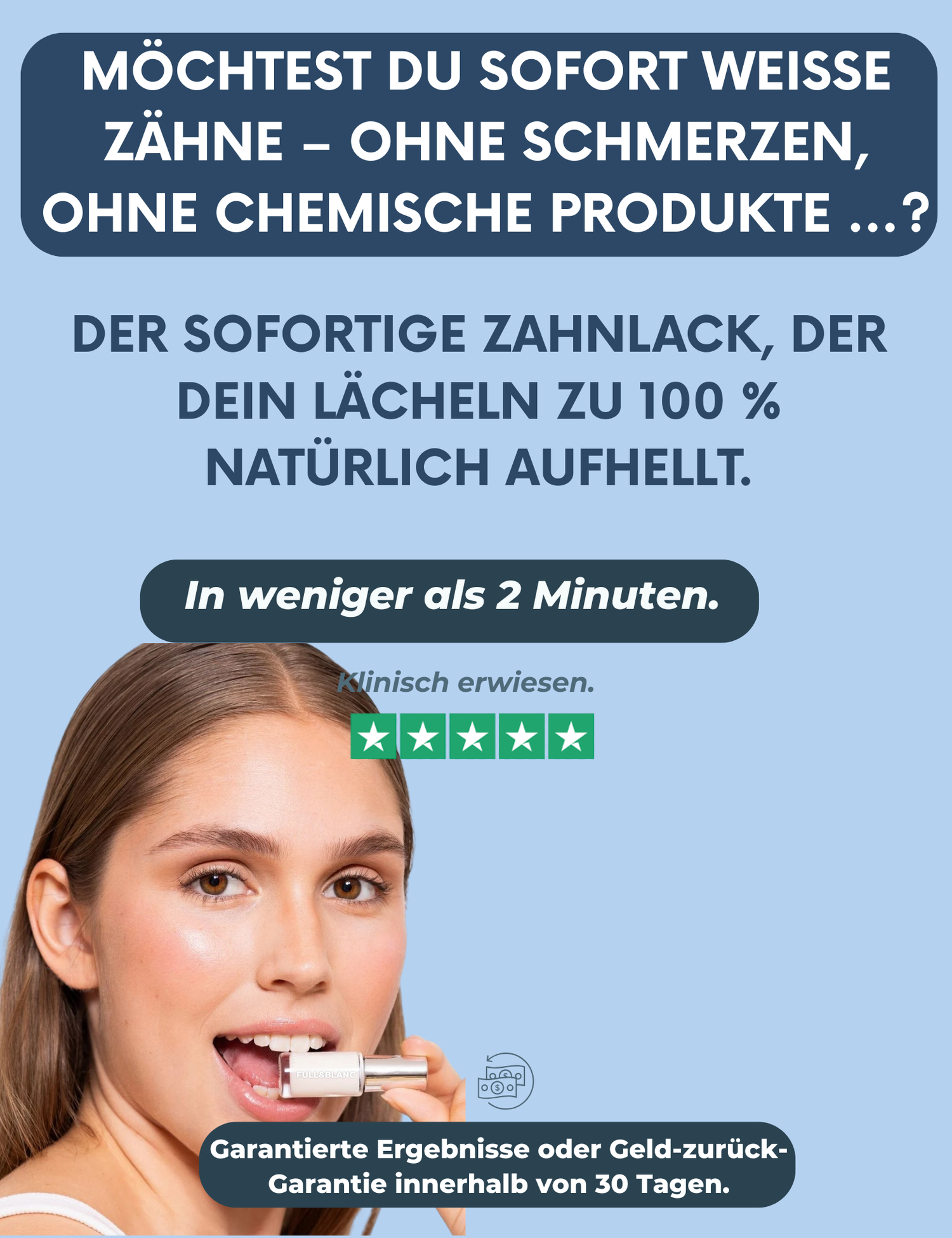 Möchtest du sofort ein weißes Lächeln ohne Termin, ohne Schmerzen, ohne Risiken?