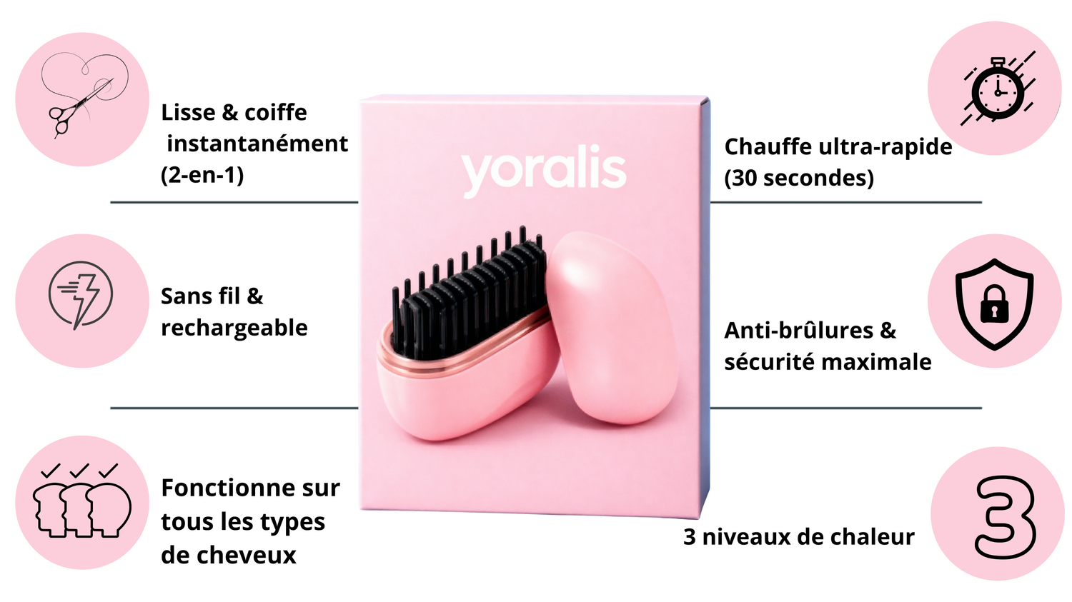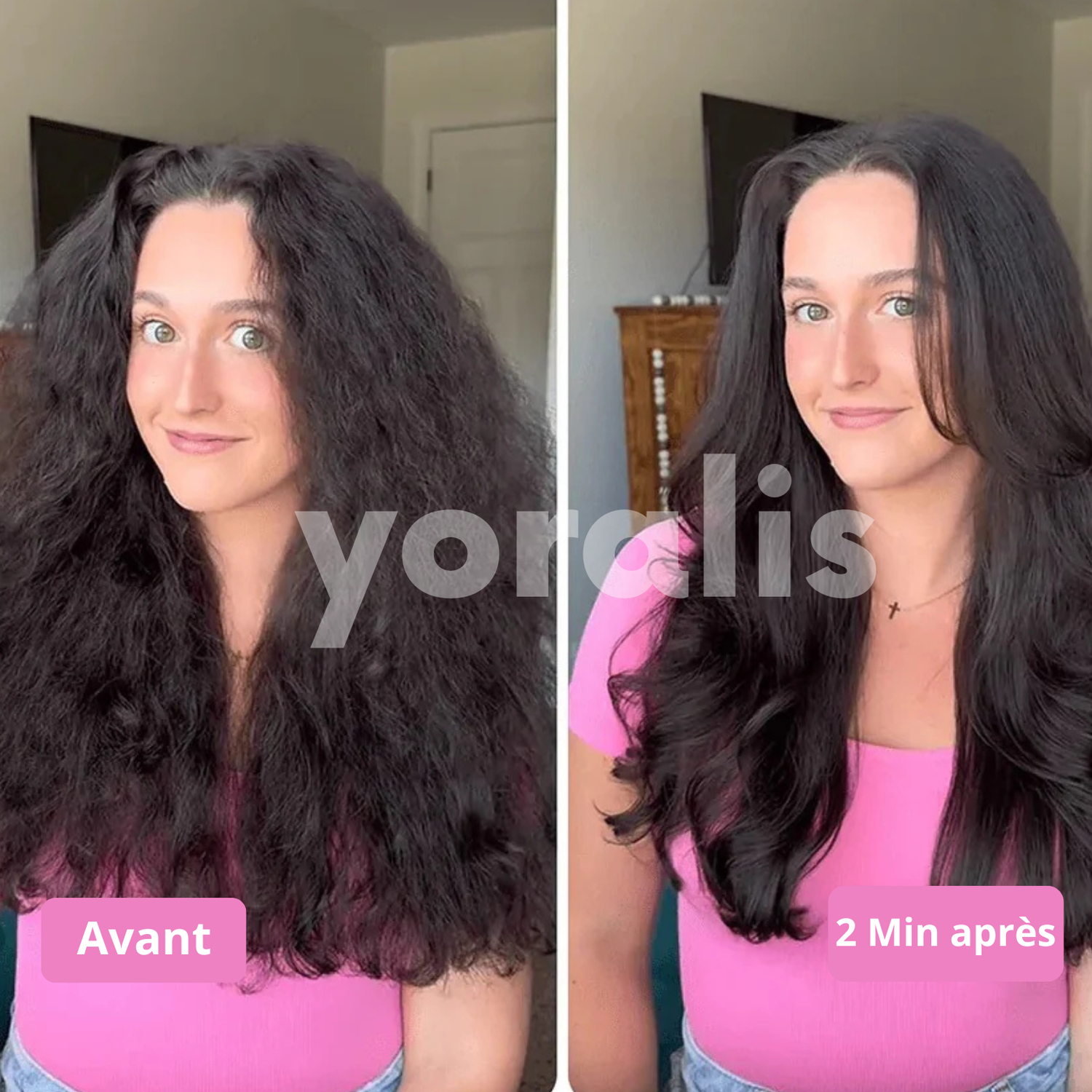 Le mini lisseur YORALIS™ utilise une chaleur céramique douce pour lisser rapidement les frisottis - pas de brûlure, pas de dommages.